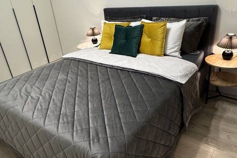 В квартире имеется две отдельные спальни с широкими кроватями и ортопедическими матрасами. В гостиной-кухне есть двухспальный диван, ЖК телевизор со смарт тв. Кухня оборудована всей бытовой техникой. Так же имеется всё необходимое для отдыха и работы: холодильник, стиральная машина, электрический чайник, СВЧ, фен, утюг, гладильная доска, посуда.