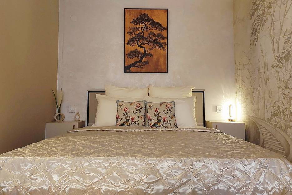 Спальное место с удобной большой кроватью 160х200 и постельным бельём высокого качества. Раскладной диван служит дополнительным просторным спальным местом и подходит для комфортного сна.