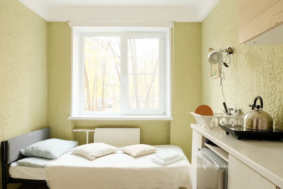 В каждой из студий есть индивидуальная мини кухня, собственный санузел с душевой, рабочая зона и удобное спальное место.