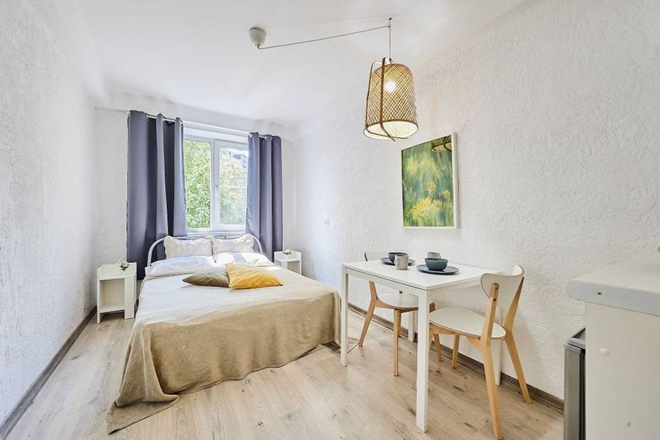 В каждой из студий есть индивидуальная мини кухня, собственный санузел с душевой, рабочая зона и удобное спальное место.