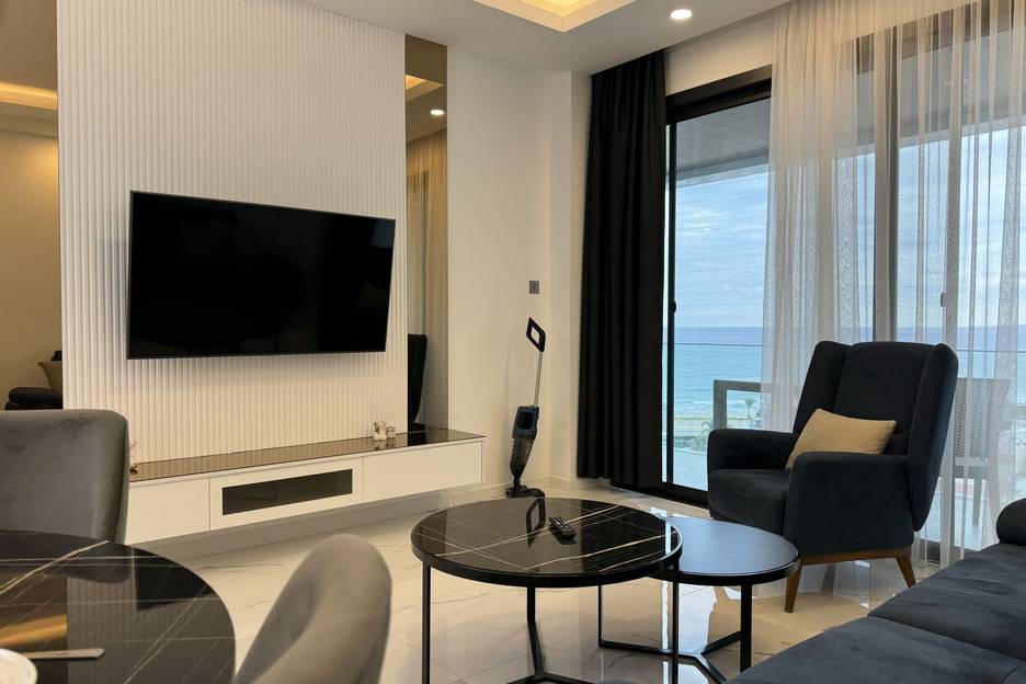 Квартира оформлена в спокойных, светлых тонах, оснащена кондиционером и подходит для комфортного проживания в любое время года.