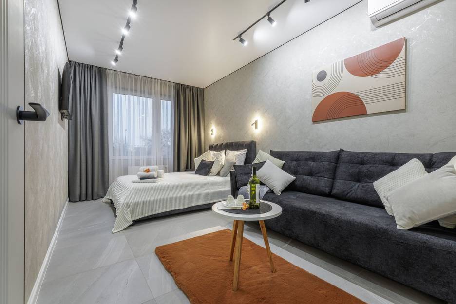 Изюминка этих апартаментов — выход на собственную террасу с балкона, на которой можно проводить вечера за чашечкой кофе, читая любимый роман. На паркинге имеется место для автомобиля. В апартаментах высокие потолки, которые добавляют пространству дополнительный комфорт, свет и лёгкость.