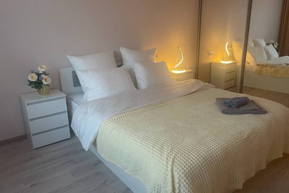 В апартаментах комфортно могут разместиться 6 гостей (3 спальных места по 2 человека) + есть раскладушка для 7 гостя