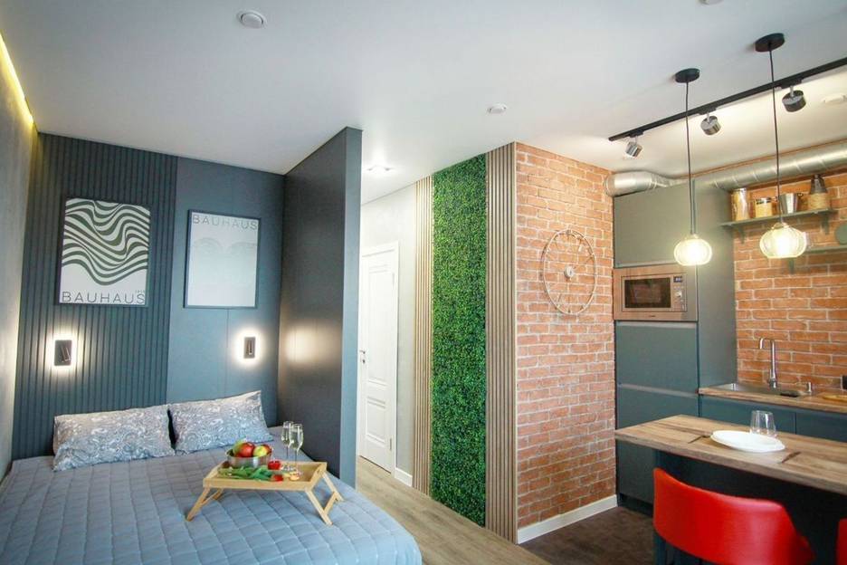 Стильная, уютная cтудия улучшeнной кaтeгории с панoрaмным видом из oкна и дизaйнерским peмoнтoм.