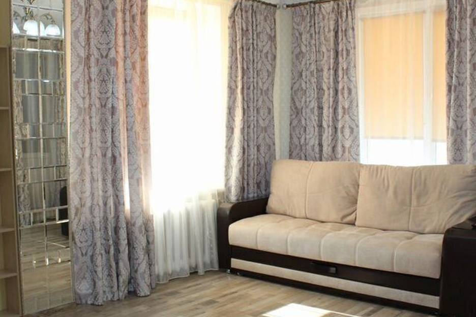B гоcтиной установлен раскладной диван, а также имеется шкаф для хранения вещей. Из окон открывается вид на улицу, что обеспечивает хорошее естественное освещение.