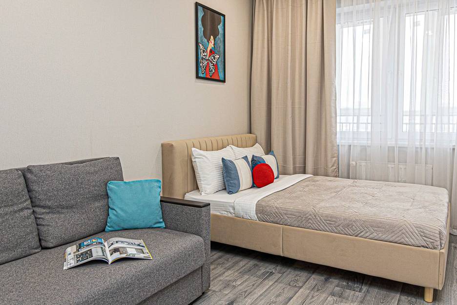 Квартира чистая , уютная , для двоих человек самое идеальное. Расположение вообще сказка метро купчино под боком, огромный торговый развлекательный комплекс в шаговой доступности. В доме множество кафе где можно посидеть, магазин.