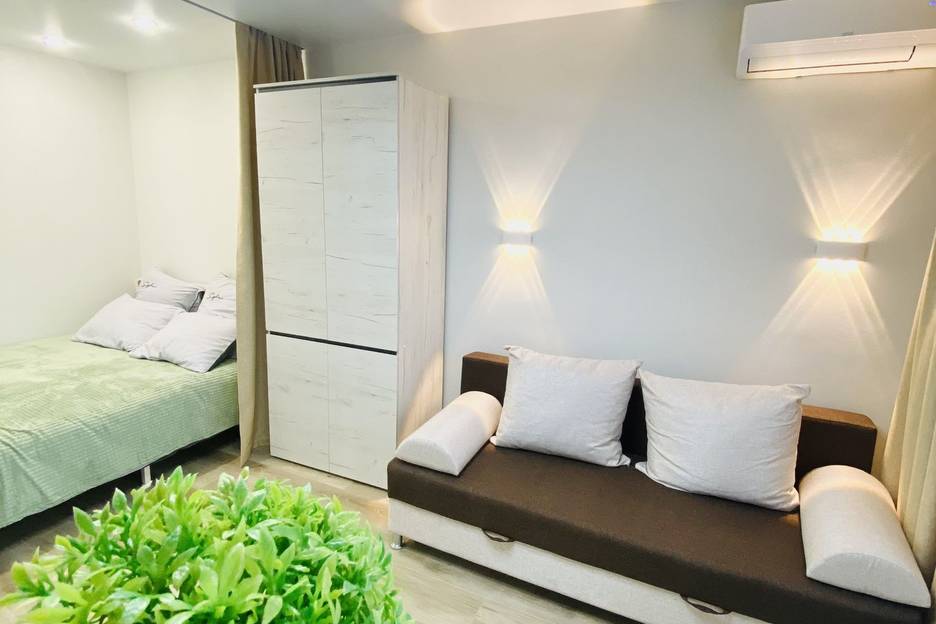 В квартире широкая двухспальная кровать с ортопедическим матрасом и широкий раскладывающийся диван, также есть кондиционер, тв, микроволновая печь, варочная панель, холодильник, электрочайник, стиральная машина, фен. Вся техника новая. Поквартирное отопление. Вам всегда будет комфортно с кондиционером летом и тепло зимой. Круглый год горячая вода.