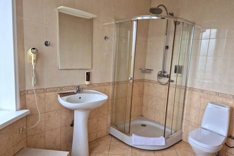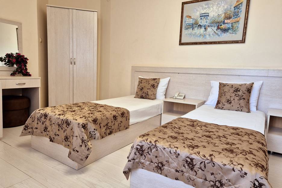 Представляем вашему вниманию трехместный номер, который может быть оборудован одной двуспальной и одной односпальной либо тремя односпальными кроватями. В номере имеется вся необходимая мебель, телевизор, холодильник и кондиционер для вашего комфорта. Также к вашим услугам чайная станция, бесплатный Wi-Fi и собственный санузел с душевой кабиной и туалетом. Надеемся, что ваше пребывание будет приятным.