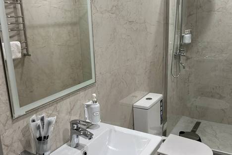 Индивидуальная ванная комната: душ, раковина, туалет.