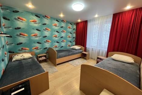 Гостям предлагается уютная квартира для посуточного проживания в центральной части города. Квартира подготовлена для заселения 5 гостей (человек), с 5 односпальными кроватями. Для проживания в квартире все имеется.