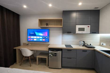 Студия с удобной планировкой — комфортно для проживания 1–2 гостей.