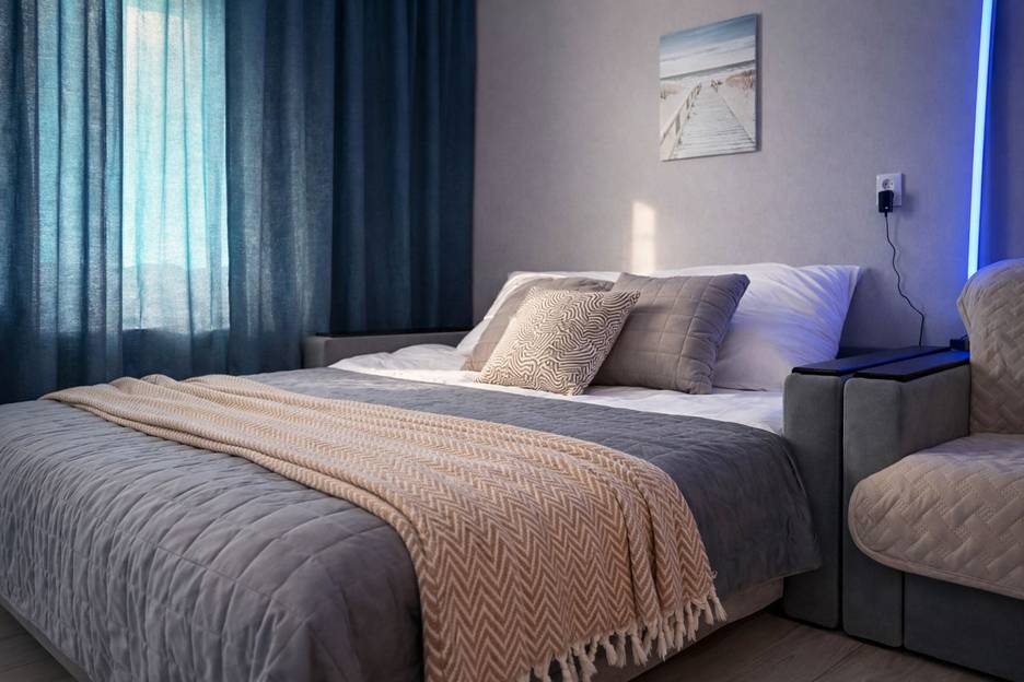 — два удобных двухспальных дивана: одна полноценная кровать, второй — раскладывается;