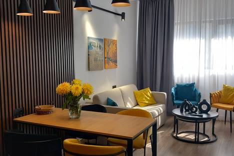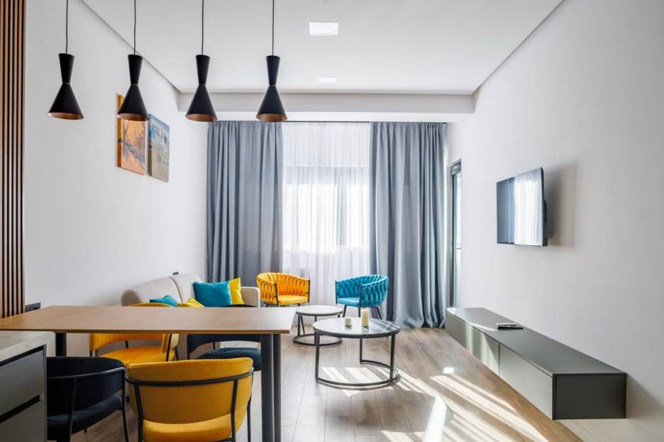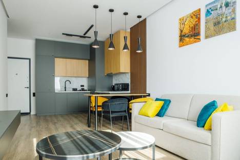 Новая, стильная квартира в центральном районе Тбилиси, всего в двух шагах от станции метро "300 арагвинцев" и автобусных остановок.