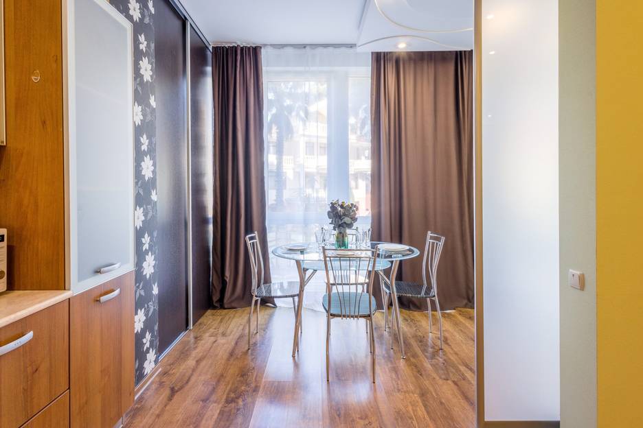 Проживали на ул. Навагинская 11, с 9.11 по 12.11. Замечательная квартира: чистая,светлая и уютная. Есть все необходимое для комфортного проживания. Очень удобная локация, в самом центре. Видом из окна можно любоваться и днем и ночью.улица прогулочная,без транспорта. Звукоизоляция номера отличная. Хозяйка Марина внимательная и заботливая. Отдохнули и «напитались» красотой. Спасибо за комфортный отдых.