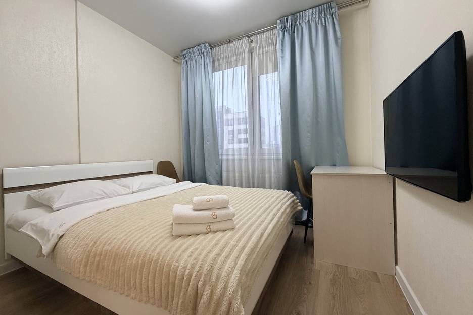 Просторная 2-комнатная квартира в самом центра города, около станции метро Восток. Рядом с квартирой расположена Национальная библиотека Беларуси, торговый центр «Dana Mall», множество кофеен и ресторанов.