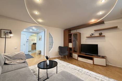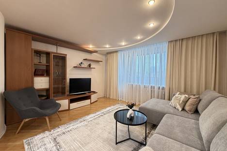- В квартире с комфортом могут проживать до 6 человек. Удачная планировка, позволяющая удобно всем разместиться. Современная кухня, санузел, 2 спальни и гостиная. Общая площадь квартиры 65 кв метров. Ремонт с использованием качественных материалов, сделан был для себя с душой! Мы предоставляем всю необходимую мебель и технику. Встроенная кухня со всей нужной гарнитурой (плита, электрочайник, духовой шкаф, СВЧ-печь, холодильник, фильтр для воды), а также вся посуда (стаканы, винные бокалы, чашки, рюмки, столовые приборы, суповые, столовые и десертные тарелки, сковороды, кастрюли, салатники и тд). Помимо этого, на кухне есть чай, кофе, сахар. Также мы подготовили для Вас все необходимые ванные принадлежности: шампунь, гель для душа, жидкое мыло, туалетная бумага, мягкие белые махровые полотенца с логотипом нашей компании. В апартаментах установлена стиральная машина, а также для удобства гостей есть утюг, гладильная доска, сушильная решетка и фен. В спальнях все кровати застелены белым сатиновым постельным бельем, которое мы изготавливали на заказ специально для наших гостей, также с фирменными логотипами. Весь текстиль регулярно стирается в профессиональной прачечной с добавлением дезинфицирующих средств. Из спален открывается потрясающий вид на город, в апартаментах есть балкон. Для удобства гостей в доме есть лифт. В квартире бесплатно предоставляется высокоскоростной интернет Wi-Fi (оптоволокно 200мб/с).