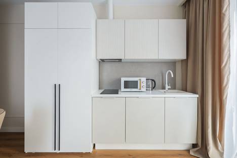 — плита, вытяжка, микроволновая печь, холодильник, чайник;