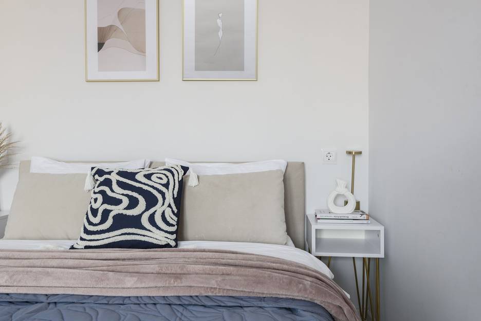 Удобную двуспальную кровать с ортопедическим матрасом и раскладной диван для двух дополнительных мест.