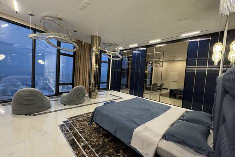 в Пентхаусе на 22 этаже , 60 м кв, вид на Ижевский пруд ( самый большой пруд Европы), на город , на Стеллу, самый центровой и роскошный вид в городе Ижевске, ночной город , когда зажигаются огни , можно смотреть не отрываясь ( Пальма- де -Майорка отдыхает) Стоит побывать в таком месте однозначно! И увидеть всю красоту Ижевска!