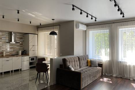 Студия оборудована всем необходимым для комфортного проживания. Здесь могут разместиться и влюблённые пары, и небольшие семьи, и командированные специалисты. Приезжайте! Всем будет удобно и точно понравится!