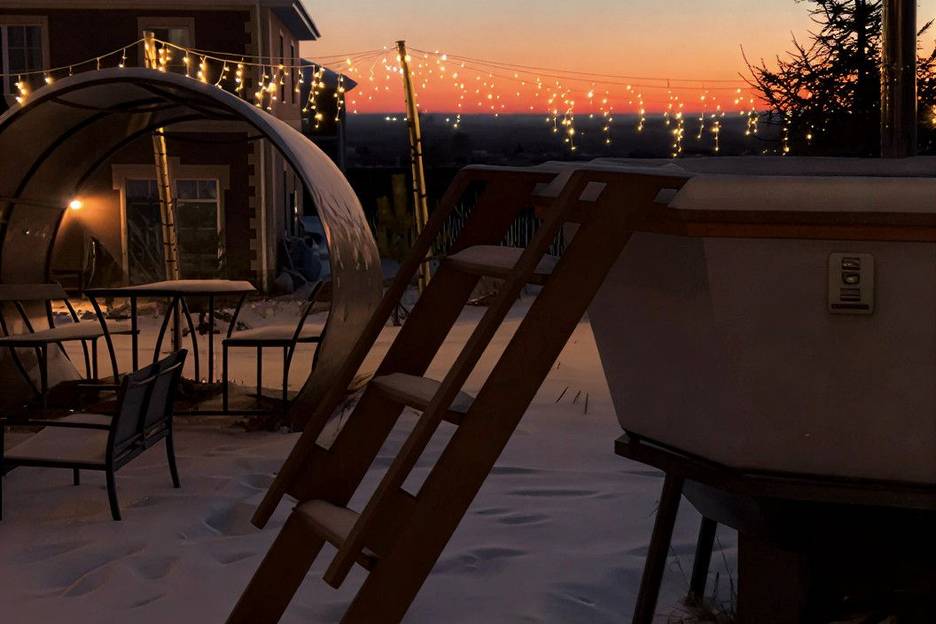 Можно привезти свою еду и напитки, накрыть красивый стол в большой гостиной, а потом продолжить вечер в тёплом чане. Закрытая территория, украшенная для красивых фотографий, позволят не отвлекаться от отдыха и получить незабываемые эмоции.