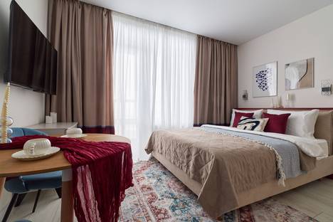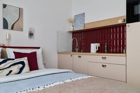 Останавливались на 10 суток. Уютно, чисто. Всё необходимое для проживания есть. Отдельное спасибо за приятные бонусы - капсулы для стирки, чай двух видов и масло для жарки уточек! Единственное неудобство - отсутствие розеток возле кровати, но, в наличии был удлинитель, им пользовались. Что касается поступной среды для инвалидов - есть лифт, но, чтобы им воспользоваться, необходимо подняться по лестнице. И лифт останавливается не на площадке на этаже, а между этажами, конечно же это не вина компании, а конструктив дома, учтите, если едите с инвалидом. В целом всё отлично, обязательно будет пользоваться услугами данной компании!