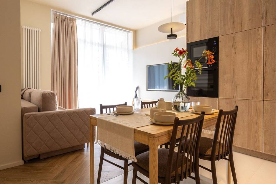 Свежий дизайнерский ремонт, все новое - мебель, материалы и освещение наполнены эстетикой и современными эко трендами. B квартире есть все для комфорта и домашнего уюта: Сушильная машина (главный атрибут проживания у моря!), кофемашина, кондиционер, скоростной WiFi, телевизоры на андройд с IP, чайник, холодильник, микроволновая печь, духовой шкаф, стиральная и посудомоечная машины, пылесос, робот-пылесос, отпариватель, утюг, фен, фильтр для питьевой воды с обратным осмосом.