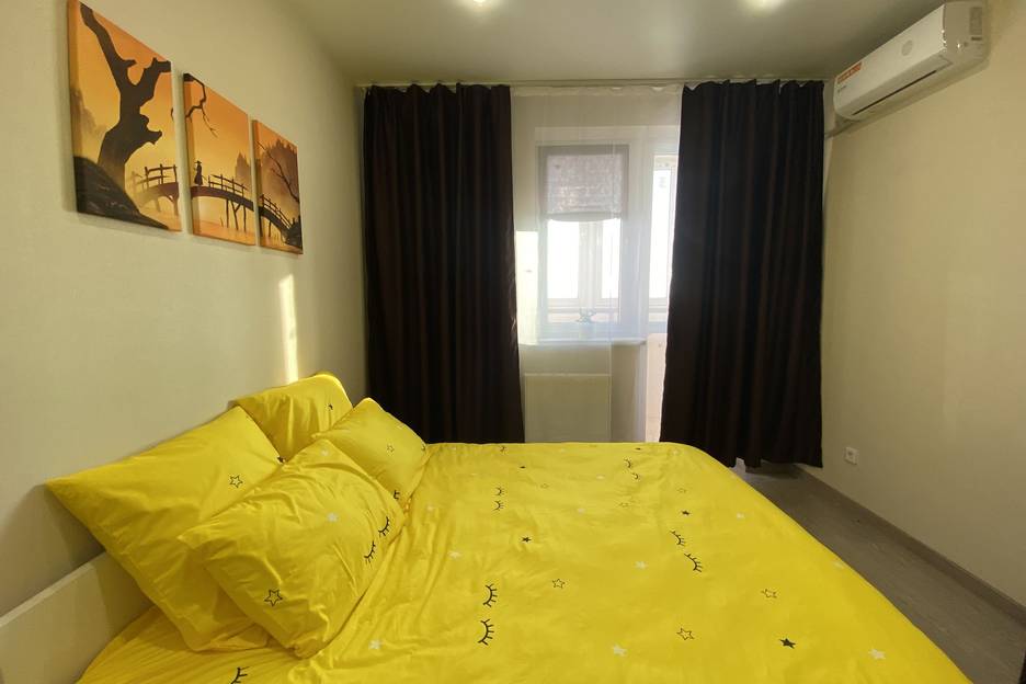Уютная однокомнатная квартира в новом ЖК «Смородина» по адресу: г. Краснодар, ул. В. Жириновского, д. 1. Подойдёт для размещения 4 человек (двуспальная кровать в спальне и диван-кровать в кухне-гостиной), постельное бельё, полотенца и средства личной гигиены предоставляются.
