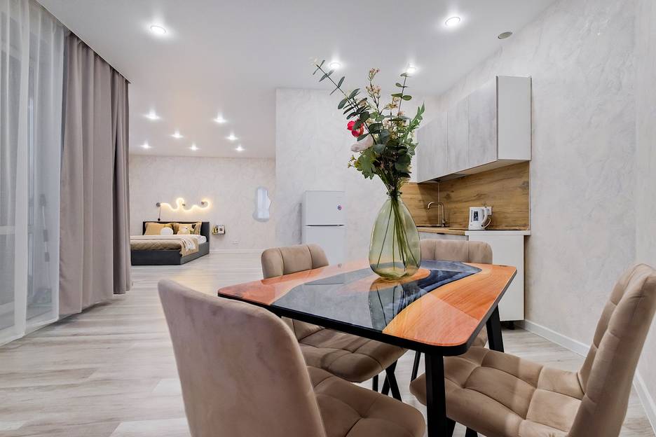 Забудьте о суете и погрузитесь в атмосферу идеального отдыха или продуктивной командировки! В нашей просторной студии, расположенной в абсолютно новом доме на родниках, вас ждет всё для комфорта. Это первые сдачи после ремонта, а значит, всё здесь новое - от стильного современного дизайна до мебели и техники. Расслабьтесь на невероятно удобной кровати с ортопедическим матрасом аскона, который обеспечит вам по-настоящему глубокий и здоровый сон.