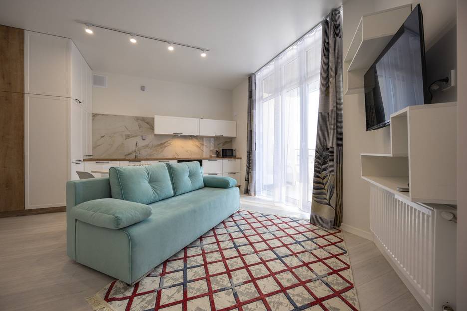 Очень удобная и инстаграмная :) квартира. Свежий ремонт, жилье аккуратное и чистое, как номер в хорошем отеле. Подходит для проживания с детьми: есть четыре полноценных спальных места (двуспальная кровать и раскладной диван), посуда, духовка, стиральная машинка. Нам для полного комплекта не хватило разве что микроволновки) Море действительно рядом, но из-за ремонта набережной, который продлится еще как минимум год, подхода к нему нет. Ближайший пляж или в поселке Пионерский, или на другом конце Светлогорска. Мы ездили на пляж на такси