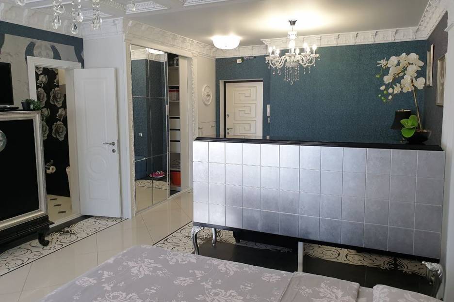 В квартире сделан стильный дизайнерский ремонт. С комфортом могут разместиться до двух человек. В апартаментах есть просторная двуспальная кровать king-size (180*200 см ) с ортопедическим матрасом, современная кухня, санузел. Общая площадь квартиры 38 кв метров. Встроенная кухня со всей нужной гарнитурой (посудомоечная машина, плита, электрочайник, духовой шкаф, СВЧ-печь, холодильник, фильтр для воды), а также вся посуда (стаканы, винные бокалы, чашки, рюмки, столовые приборы, суповые, столовые и десертные тарелки, сковороды, кастрюли, салатники и тд). Помимо этого, на кухне есть чай, кофе, сахар. Также мы подготовили для Вас все необходимые ванные принадлежности: шампунь, гель для душа, жидкое мыло, туалетная бумага, мягкие белые махровые полотенца с логотипом нашей компании. В апартаментах установлена стиральная машина, для удобства гостей есть утюг, гладильная доска, сушильная решетка и фен. Также установлен кондиционер, чтобы вне зависимости от погоды, Вы всегда чувствовали себя комфортно в наших апартаментах. Кровать застелена белым сатиновым постельным бельем, которое мы изготавливали на заказ специально для наших гостей, с фирменными логотипами. Весь текстиль регулярно стирается в профессиональной прачечной с добавлением дезинфицирующих средств. В квартире бесплатно предоставляется высокоскоростной интернет Wi-Fi (оптоволокно 200мб/с).