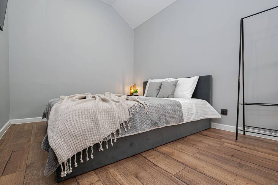— Двуспальная кровать с ортопедическим матрасом и нежным постельным бельём из сатина