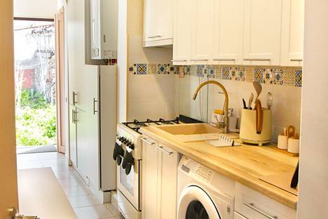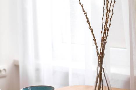 Всё в квартире сделано с любовью — именно поэтому здесь вы найдёте множество приятных и полезных мелочей: бокалы, тёрка, дуршлаг, турка, заварочный чайник, гейзерная кофеварка, ваза, графин, лопатки, половник, салатница, форма для запекания, стеклянные контейнеры — всё то, что каждой хозяйке всегда хочется иметь под рукой и то, что создаёт уют.