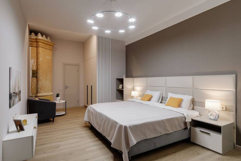 • 2 тихие спальни с ортопедическими матрасами, спальные места 200х200см и 180х200см. Спальное место 200х200см может быть подготовлено в формате одной большой кровати так и 2ух кроватей 100х200см по вашему желанию.