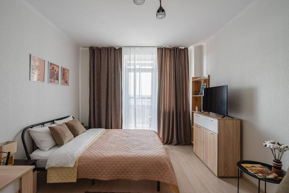 По домашнему чистая, уютная и комфортная квартира находиться в современном, ярком, жилом квартале, рядом с ТРЦ "Веер Молл" на проспекте Космонавтов. Красивый вид на парк с соснами!