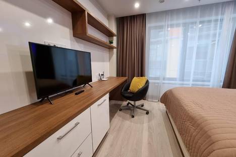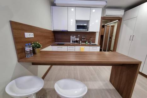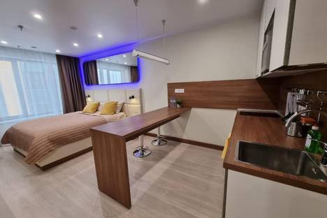 Однокомнатная квартира-студия в новом доме с дизайнерским ремонтом. Квартира расположена в 10 минутах ходьбы от метро Митино. Спальных мест 2