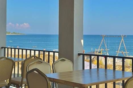 Отель «Жемчужина Абхазии» расположен на первой линии с собственным выходом на роскошный пляж центральной набережной г. Гудаута.