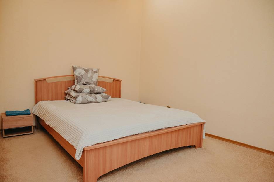 Вас ждёт комфортное размещение с четырьмя спальными местами: двуспальная кровать и удобный диван-кровать (2+2).