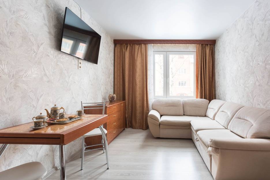 Удобная мебель: в спальне 2х спальная кровать с ортопедическим матрасом. В гостиной диван, который раскладывается в полноценную 2х спальную кровать. В наличии красивое хлопковое мягкое бельё, гипоаллергенные подушки и одеяла. По запросу предоставляется удобная раскладушка для 5-го гостя.
