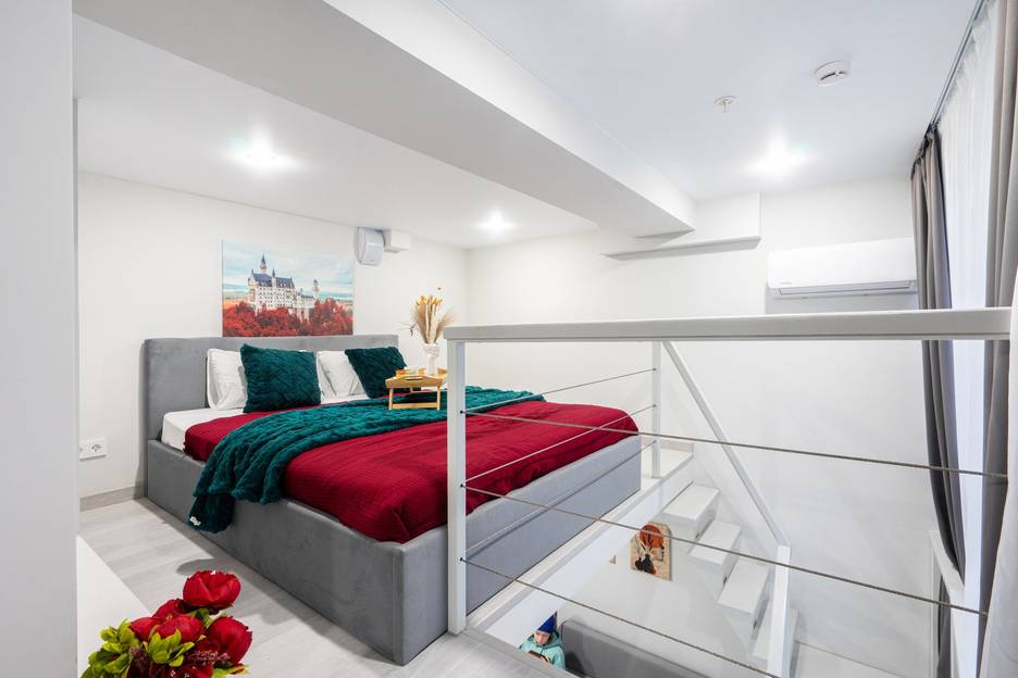 Двухуровневый номер «люкс» в «AURA» оформлен в современном стиле и оснащены всем необходимым для комфортного пребывания: