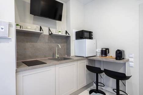 ~ Кухонная зона со всем необходимым: варочная поверхность, электрический и заварочный чайник, микроволновка, капсульная кофемашина, мини-холодильник, вся необходимая посуда и кухонная утварь;