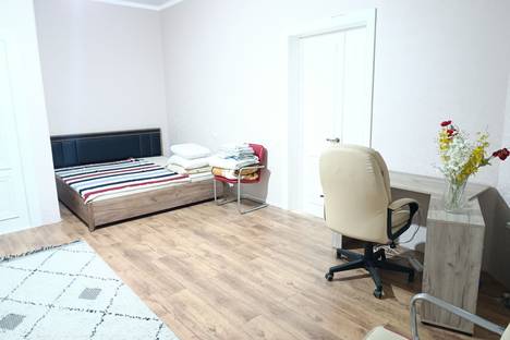 Посуточно сдам комнату в Грозном по недорогой цене площадью 25 кв/метров. Всего 4 спальных места. Новый двуспальный диван, кровать двуспальная с ортопедическим матрацем, тумбы прикроватные, стол для ПК, журнальный столик, кресло, большой монитор, гардеробная. Установлены: кондиционер, усилитель для мобильной связи. Шторы-жалюзи на окнах эркера.