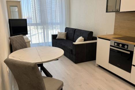 Сдаётся уютная и стильная квартира с современным ремонтом. Пространство продумано до мелочей: светлая гостиная с удобным диваном и телевизором, компактная кухня с полной техникой для приготовления пищи, просторная спальня с большой кроватью и мягким освещением, а также современная ванная комната с ванной и душем.