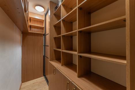 Есть отдельная гардеробная комната, где можно разместить чемоданы и личные вещи. Предусмотрено много мест хранения. Есть стиральная машина, комплекты полотенец и средств гигиены на каждого гостя.