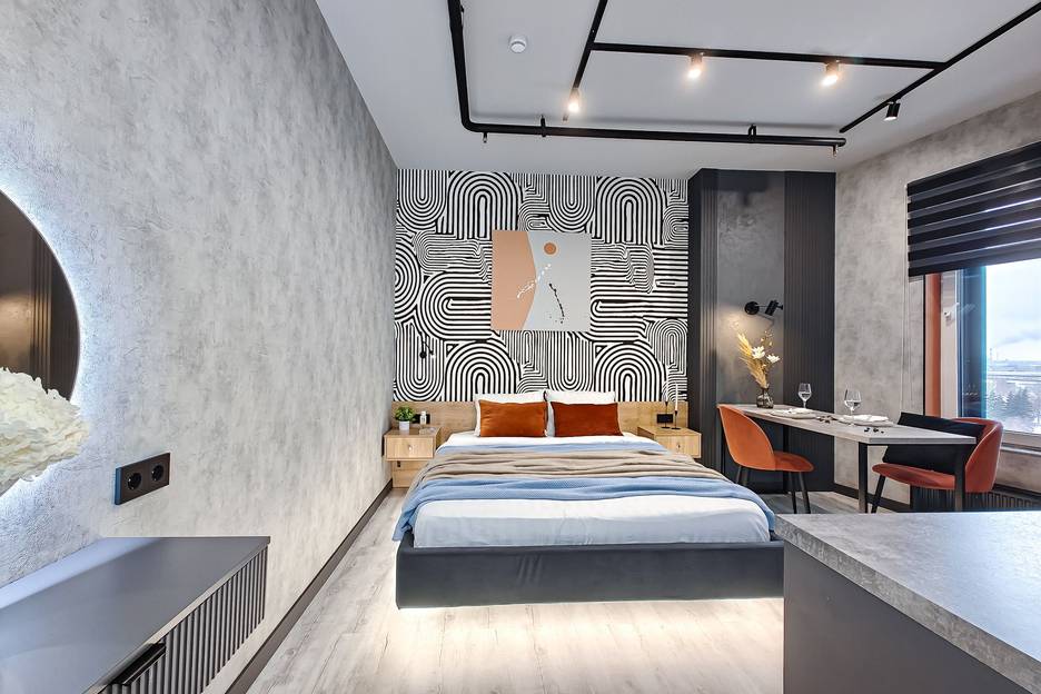 техника: Smart-TV, безлимитный Wi-Fi, холодильник, СВЧ, варочная панель, электрический чайник, стиральная машина, водонагреватель, фен, утюг, кондиционер* (установка планируется в мае)