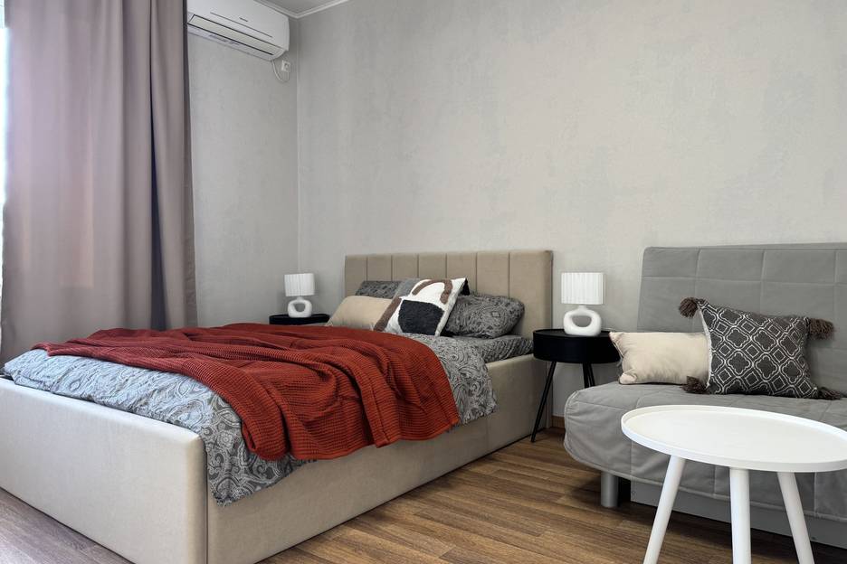 ️мебель: кровать queen-size 160х200, прикроватные столики, двуспальный диван-кровать, шкаф платяной, обеденный стол, стулья