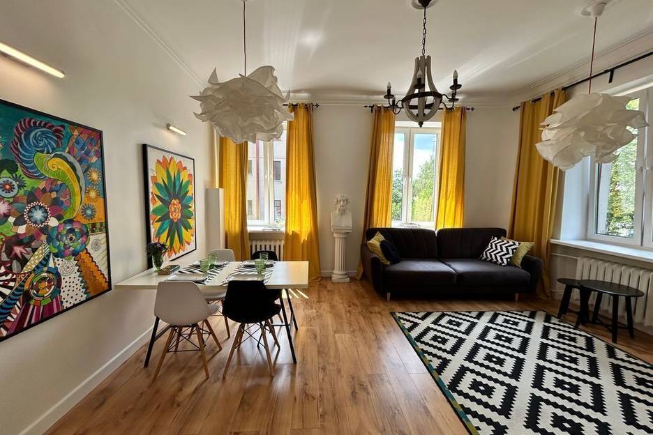 60 квадратных метров с двумя раздельными комнатами (ортопедическая новая кровать и комфортный широкий диван-кровать), кабельное телевидение, Wi-Fi (до 500 Мбит), полностью оборудованная отдельная кухня и раздельный санузел (душевая кабина). Стиральная машина, чайник, утюг, микроволновая печь, все необходимые гигиенические принадлежности.