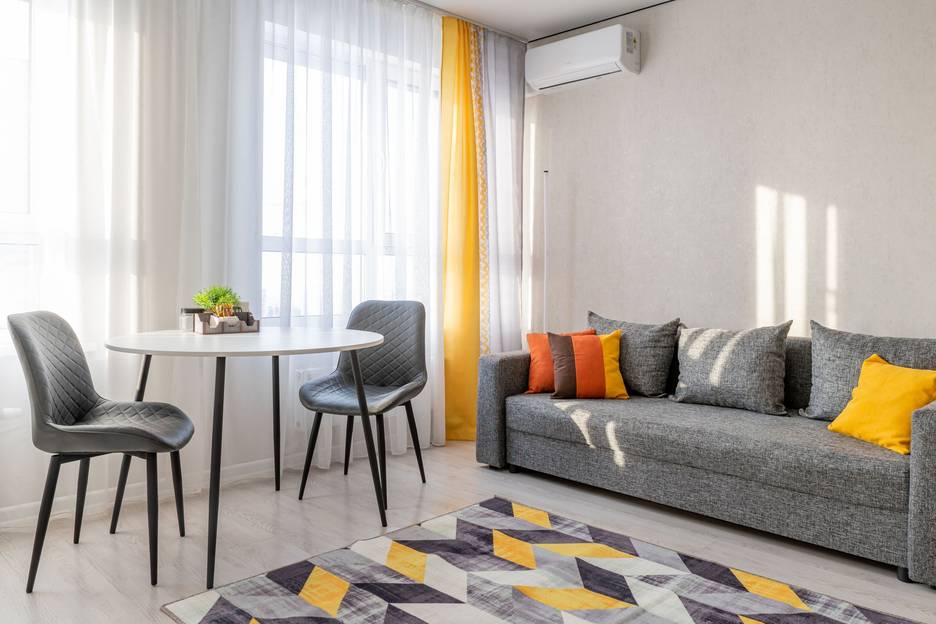 Просторная гостиная с мягким диваном — идеальное место для отдыха после насыщенного дня.