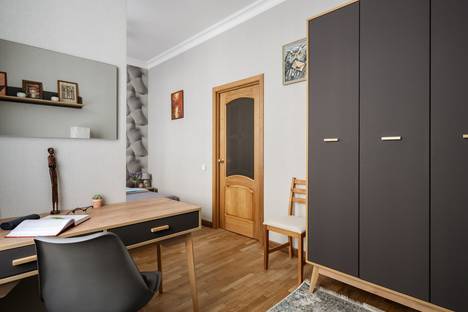 Светлая трехкомнатаня квартира выполнена в современном дизайне, с продуманной планировкой и обстановкой, которая создаёт ощущение простора и уюта. Всё необходимое под рукой: полностью оборудованная кухня, уютная спальная зона с персональной гардеробной, современная техника и качественная посуда. Приятные детали интерьера обеспечат комфортный отдых после активного дня в городе.