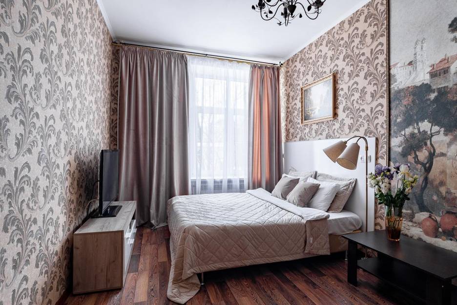В квартире две спальни с удобными двуспальными кроватями и ортопедическими матрасами, есть раскладной диван и телевизор. Кухня полностью оборудована для приготовления, санузел раздельный с душем добавляют комфорт и экономят ваше время.